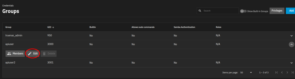 If an existing group wasn’t used, or if the user’s group wasn’t added to the privilege on its creation, go to the Groups menu. Expand the group, and click Edit.
