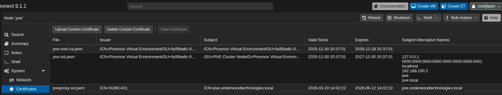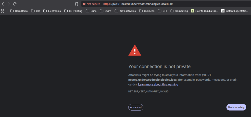 As it turns out, tons of infrastructure uses self signed certificates by default. It’s even worse if Java is involved. I’m sure there are some of you getting flash backs of pop up windows and Java errors right now. If dealing with a lab domain (such as underwoodtechnologies.local,) publicly provided certificates become more difficult to use. Free services like LetsEncrypt and automated renewal through ACME work great but may be a headache to implement internally if you own a public domain due to validation requirements.
