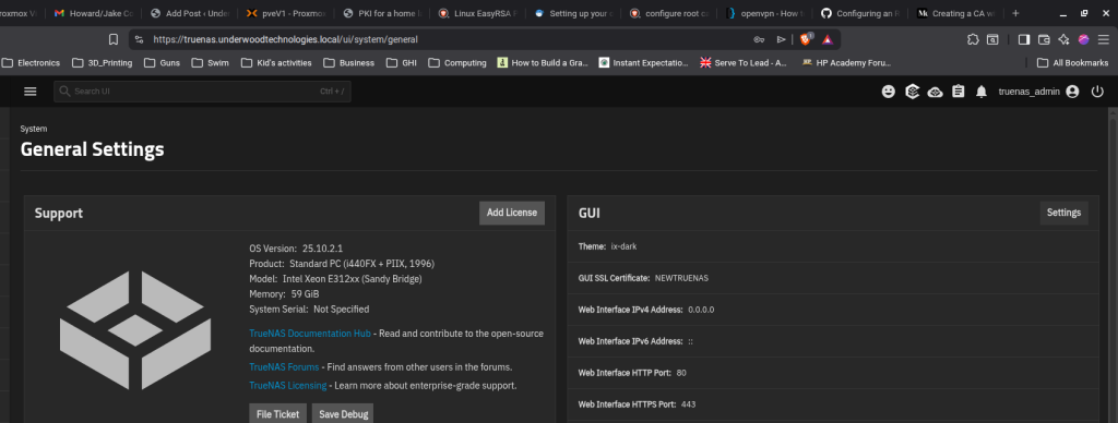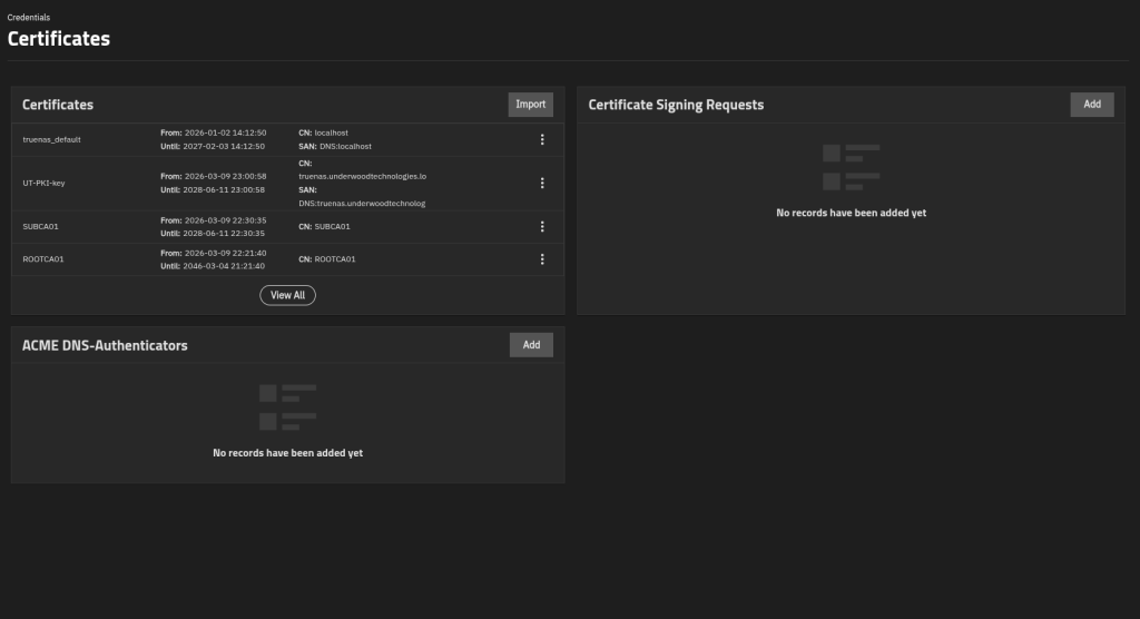 - Install the certs for infrastructure (Proxmox VE and TrueNAS currently in my case)